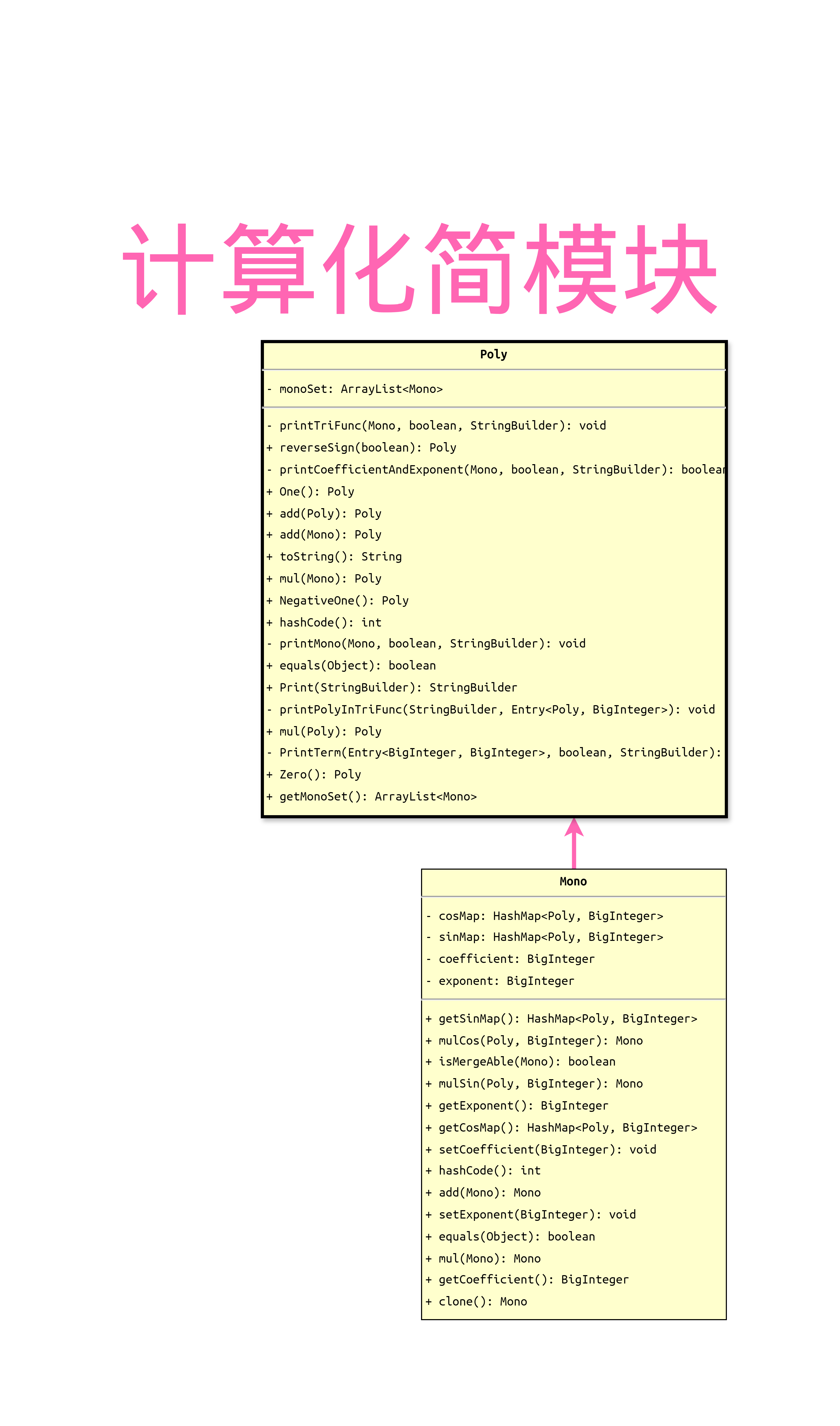 举例来说,我们可以分析这个只由两个类实现计算、化简、简化功能的模块: