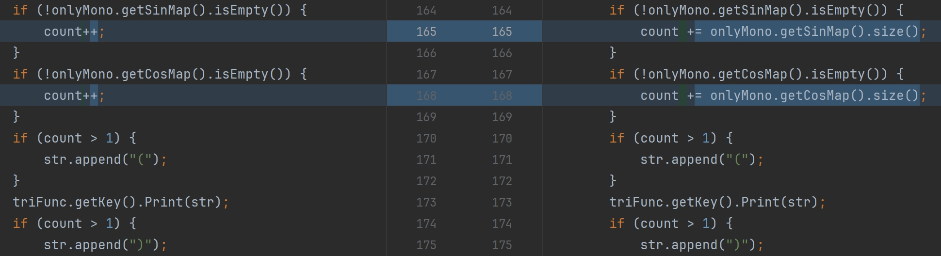 二是求导因子,但课程组给求导因子的限制过大,尤其是出现范围十分限定,因此我们只需在主线的流水线挑一个方便的环节(包括解析,运算,赋值,简化),附带上求导运算,就实现了。